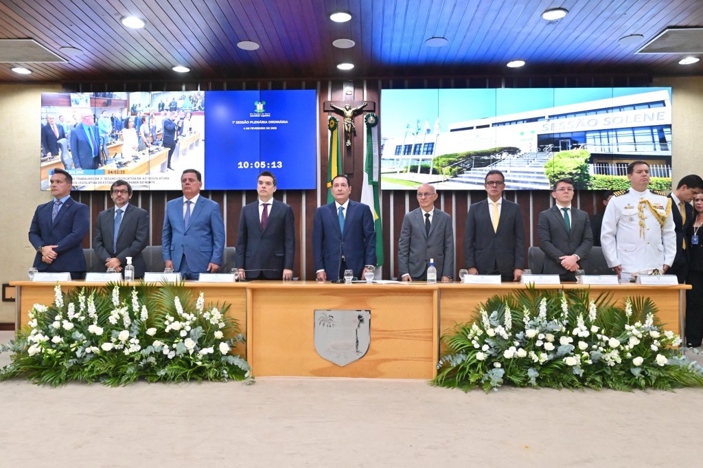 O parlamentar e os colegas que comporão a mesa diretora para o biênio 2025-2027 assinaram o termo de posse. Em seguida, o presidente da Casa fez um breve discurso no qual agradeceu a confiança dos seus pares e servidores.