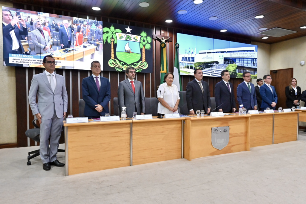 Na leitura da mensagem anual do Poder Executivo, nesta terça-feira (11), na Assembleia Legislativa do Rio Grande do Norte, a governadora Fátima Bezerra (PT) fez um resumo do seu mandato e detalhou os próximos investimentos que serão prioridade. A sessão solene contou com a presença dos parlamentares e representantes de todos os poderes.