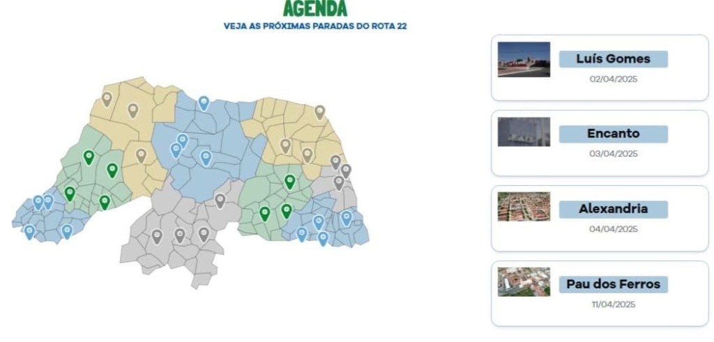 A primeira oficina ocorre nesta quarta-feira (02) em Luís Gomes, no Salão Glamour. Já na quinta-feira (03) será a vez de Encanto receber a iniciativa, que ocorrerá na Câmara Municipal. Na sexta-feira (04), o primeiro ciclo se encerra em Alexandria, também na Câmara Municipal. Sempre a partir das 8 horas. No dia 11, será realizado um seminário em Pau dos Ferros, com a presença do ex-presidente Jair Bolsonaro e do senador Rogério Marinho.