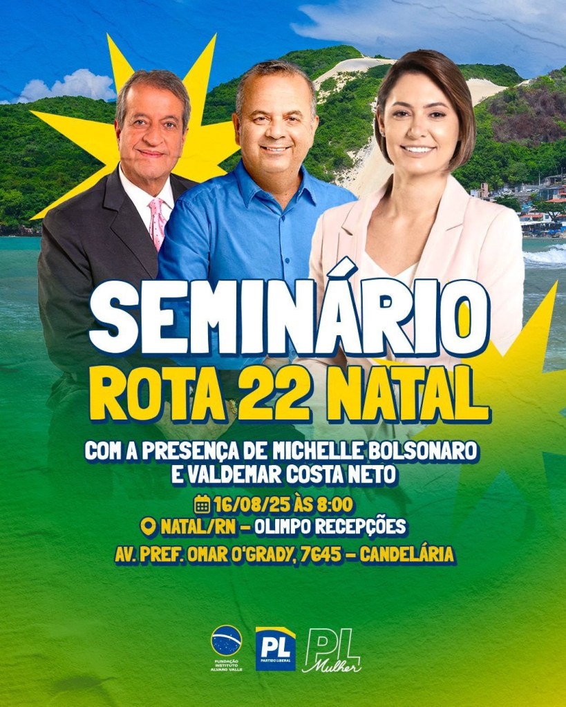 A próxima parada do Rota 22 será neste sábado, 16 de agosto, em Natal, com o Seminário da Região Metropolitana, a partir das 8h, no Olimpo Recepções, em Candelária. O evento contará com a presença da ex-primeira-dama Michelle Bolsonaro, presidente nacional do PL Mulher, como convidada especial, assim como o presidente nacional do PL, Valdemar Costa Neto que será um dos palestrantes do evento. O Rota 22 segue mobilizando lideranças e a população do Rio Grande do Norte em torno de debates sobre o futuro do estado e do país.