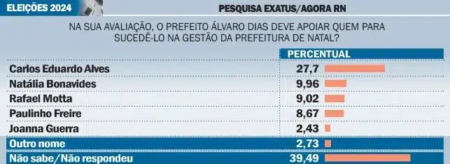 Quanto à aprovação da gestão Eraldo Paiva, 51% dos entrevistados aprovam, 44,8% desaprovam, 4,2% não sabem ou não quiseram opinar.