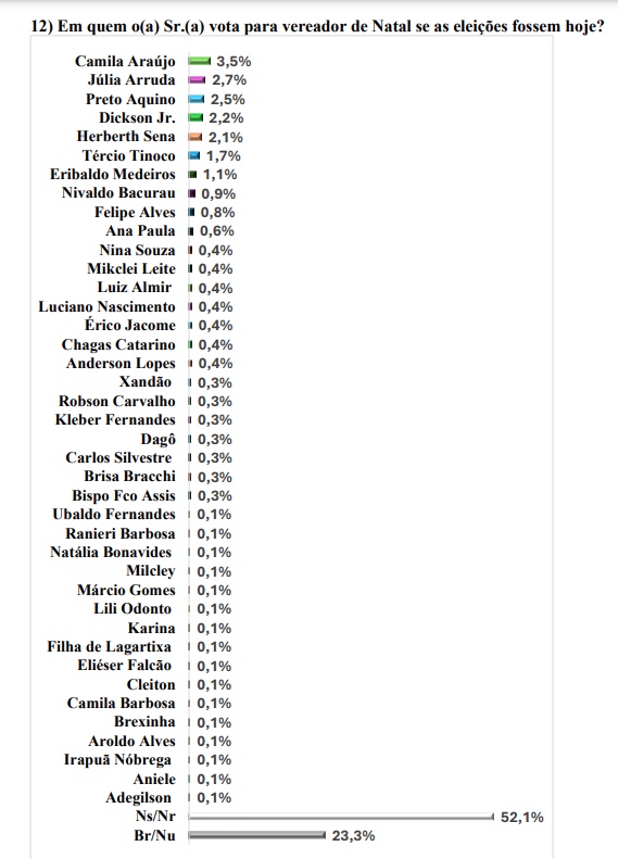 A PESQUISA BRÂMANE/ BG/ NATAL também perguntou aos entrevistados em quem votariam para vereador.