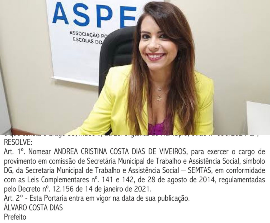 Como este editor mesmo adiantou, o diário oficial do município, em sua edição extra, trouxe a nomeação de Andréa Dias para comandar a pasta da Assistência Social de Natal.